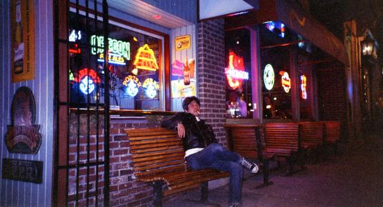 さ〜て、ここが ライブハウス。 文字を嵌め込む 看板とかって 「アメリカ」ってカンジだよね〜。 |
